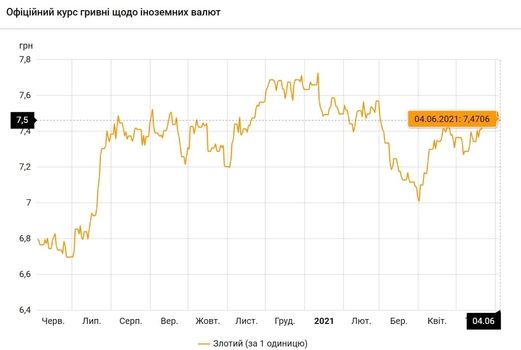- 100 польских злотых - 747 грн (7,47 за злотый, +1 коп.)