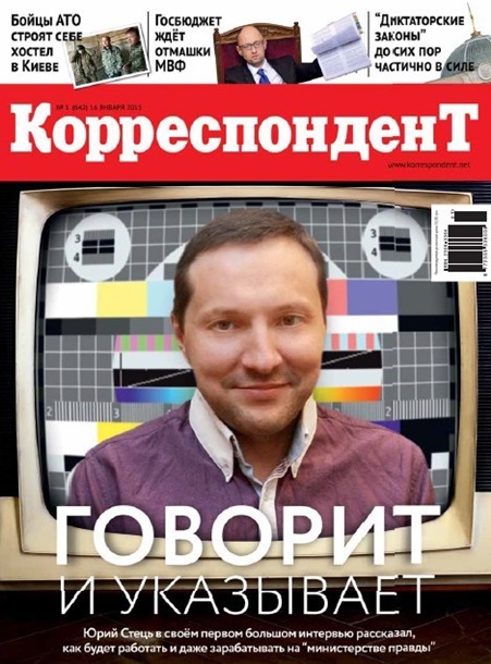 Отметим, что героем обложки обновленного "Корреспондента" стал министр информации Юрий Стець. Свое первое на этой должности интервью он дал "Корреспонденту", в частности, отметив, что при Януковиче цензура была невозможна.