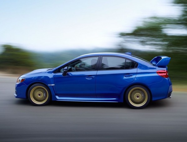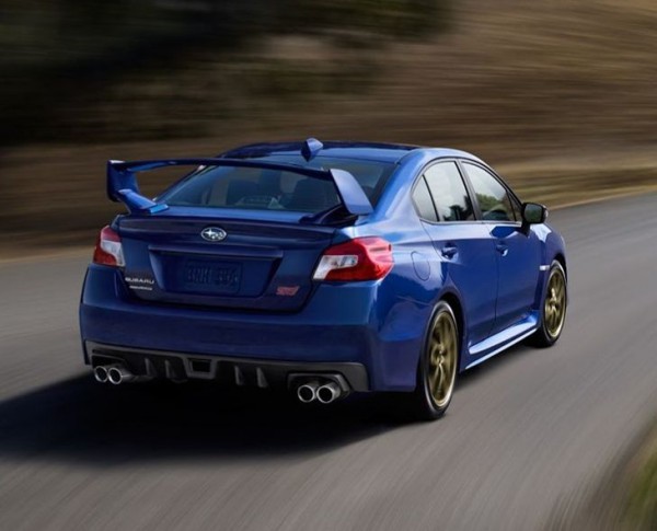 Судя по фото, новый WRX STI отличается от недавно представленного седана WRX более агрессивным аэродинамическим обвесом кузова, легкосплавными колесными дисками позолоченного оттенка, а также массивным спойлером на крышке багажника.