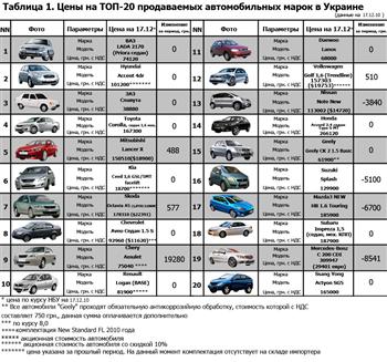 За отчетный период (с 24 ноября по 17 декабря) стоимость автомобилей марок, входящих в индексную корзину, снизились на 0,12%. При этом за период с начала мониторинга (15.02.2010) цены на указанные авто выросли на 2,57%. Об этом свидетельствуют данные мониторинга, проводимого порталом BIZ.liga.net.