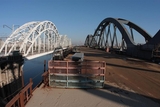 Железнодорожно-автомобильный мостовой переход через Днепр в Киеве объединяет в себе две составляющие: железнодорожную - две колеи, и автомобильную - дорога из шести полос (по три в каждом направлении). Длина моста - 1066,2 м, строительная длина железнодорожных путей - 32,71 км, длина автомобильных подходов - 15,08 км.
