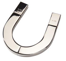 Половинки соединены между собой магнитом, что позволяет использовать флэшки по отдельности, а хранить вместе — в виде подковы, приносящей удачу.