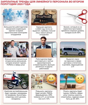 А вообще, работодатели будут держаться за ключевых сотрудников. И даже те компании, которые решат сокращать заработную плату, скорее, сделают это для административного и вспомогательного персонала, чем для работников, которые генерируют основной доход: менеджеров по продажам, маркетологов, торговых представителей и т. д.