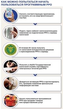 Для того чтобы начать пользоваться программным РРО, потребуется совершить несколько манипуляций. Прежде всего, выбрать продукт и установить его на смартфон, планшет либо компьютер. Далее нужно подключить РРО к серверу налоговой службы. Для этого следует подать заявление для регистрации программного РРО.