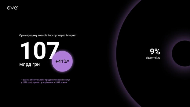 В Украине в 2020 году граждане приобрели онлайн товаров и услуг на 41% по сравнению с 2019 годом. Общая сумма покупок онлайн составила более 107 млрд грн, тогда как в 2019 году на онлайн-приобретения ушло только 76 млрд грн.