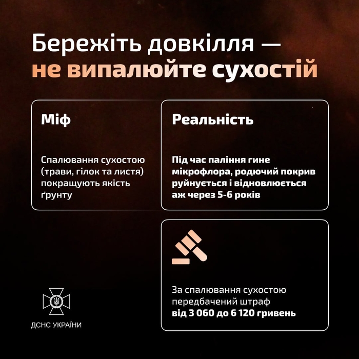 В Украине за сожжение сухостоя наказывают серьезными штрафами, так как это вредит окружающей среде и может привести к пожару. Об этом сообщили в ГСЧС.