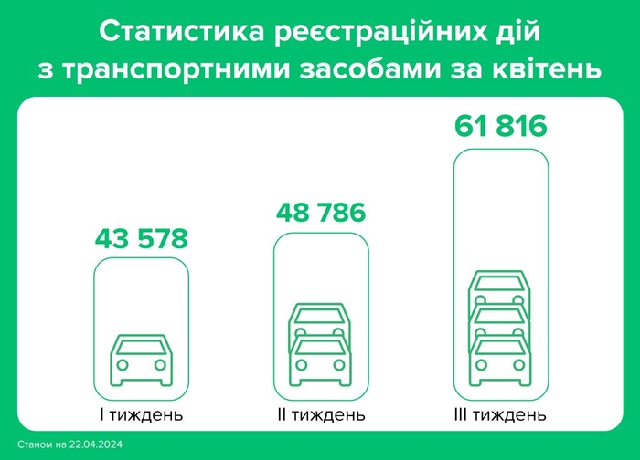 "Следовательно с начала этого месяца по состоянию на 22 апреля количество регистрационных операций выросло на 42%", - говорится в сообщении.