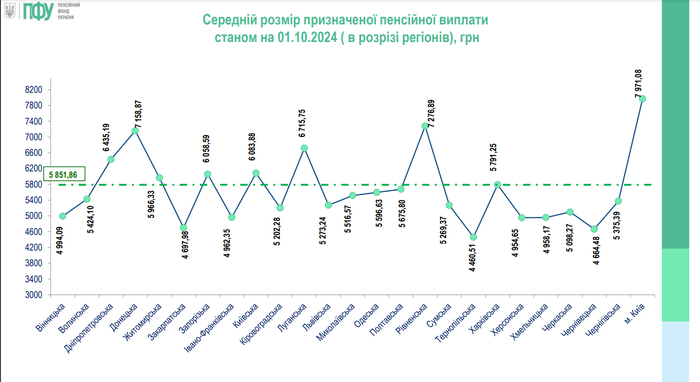По состоянию на 1 октября 2024 года в Украине насчитывается 10 342 593 пенсионера, средний размер пенсионной выплаты составляет 5851,86 грн. Самая низкая пенсия в Тернопольской области, а самая высокая - в Киеве. Об этом свидетельствуют данные Пенсионного фонда.
