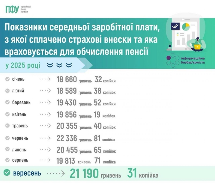 Пенсионный фонд Украины утвердил показатель средней заработной платы за сентябрь 2025 года, с которой уплачены страховые взносы и которая учитывается для исчисления пенсии. Он более чем на 1370 грн больше показателя августа. Об этом пишут Dengi.ua со ссылкой на данные ПФУ.