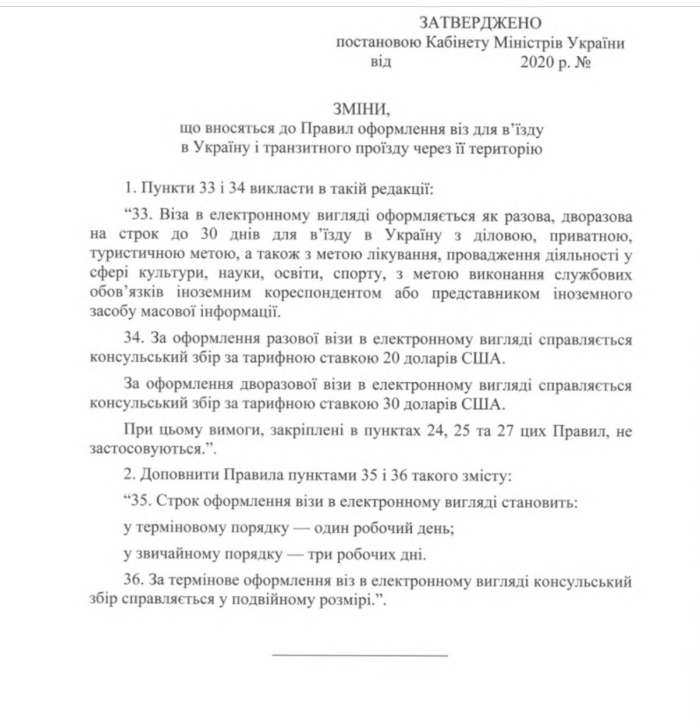 Согласно решению Правительства, в Украине вводятся разовые визы по 20 долларов и двухразовые по 30. Оформить документы можно в стандартном (3 дня вместо 9) или срочном порядке. При оперативном оформлении в один рабочий день стоимость увеличится в два раза.