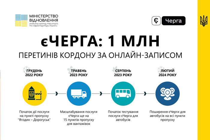 Речь идет о периоде с декабря 2022 года, когда "єЧерга" начала работать на крупнейшем пункте пропуска "Ягодин - Дорогуск", до мая этого года, когда услуга уже заработала на всех ключевых пунктах пересечения границы для автобусов и грузовиков.