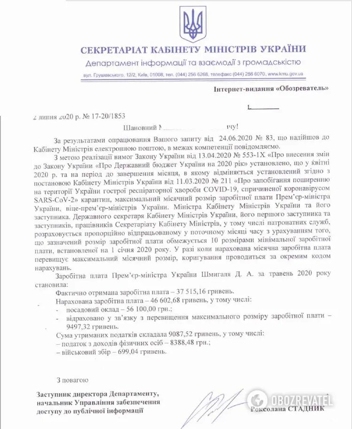 Об этом сообщили в секретариате Кабинета министров Украины в ответ на официальный запрос "Обозревателя".