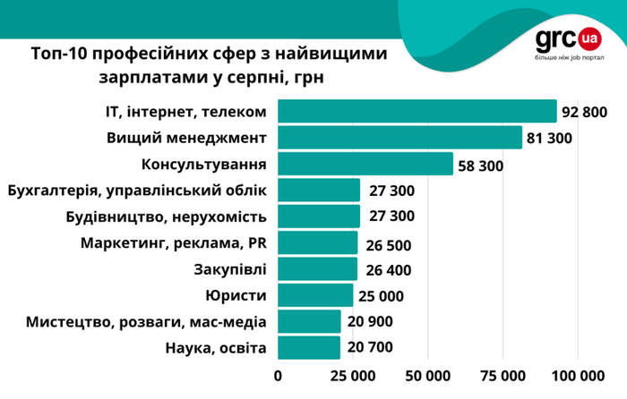 Кроме того, в десятку наиболее высокооплачиваемых сотрудников попали бухгалтеры и специалисты по управленческому учету и финансам предприятия. В августе в открытых вакансиях в этой сфере предлагают в среднем зарплату в размере 27 300 грн.