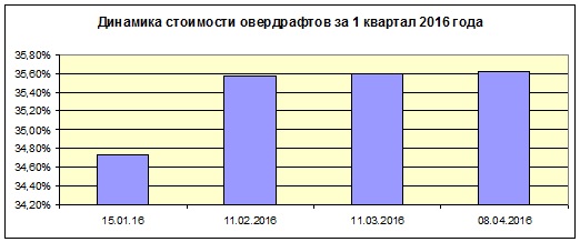 Овердрафты также претерпели минимальных изменений. Средняя кредитная ставка выросла за прошедший месяц на 0,03 п.п. Средняя стоимость составляет 35,63% годовых. За февраль рост ставки составил 0,02 п.п. Неценовые условия остаются прежними. Наиболее выгодную ставку предлагает Кредобанк - 23% годовых. Самую высокую стоимость овердрафта предлагает ПУМБ - 49% годовых.