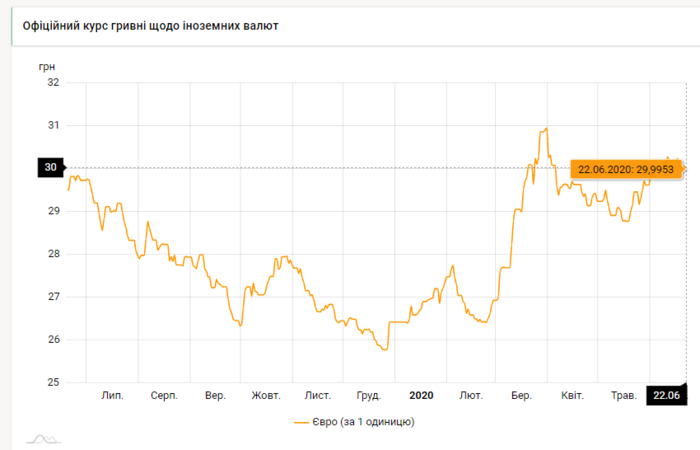 - евро (покупка / продажа) - 29,97 / 30,00