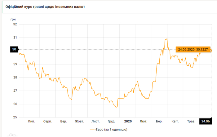 - 100 евро - 3012 грн (30,12 за евро, +23 коп.)