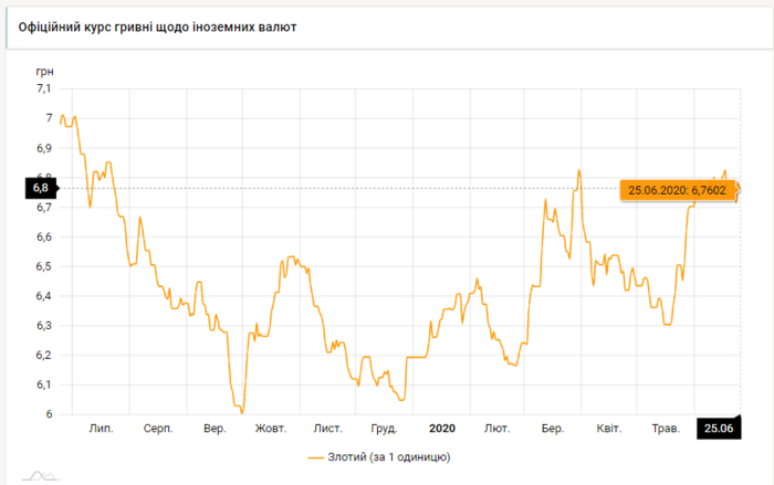 - 100 польских злотых - 676 грн (6,76 за злотый, -2 коп.)