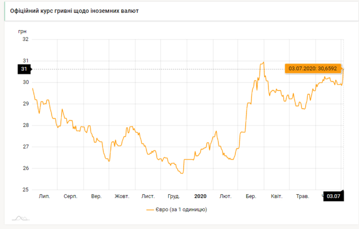 - 100 евро - 3065 грн (30,65 за евро, +74 коп.)