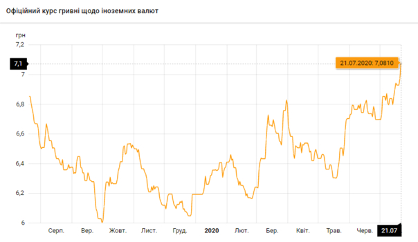 Национальный банк Украины обновил курсы валют на 21 июля 2020 года.