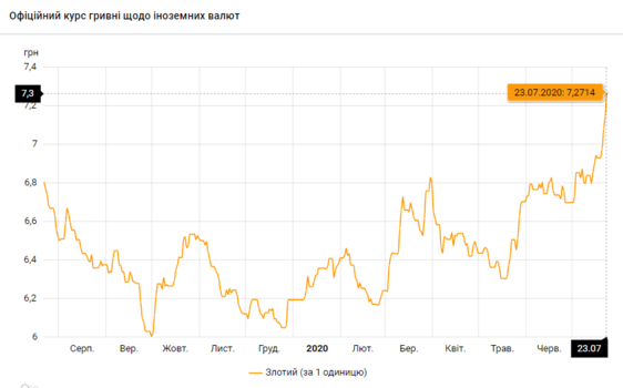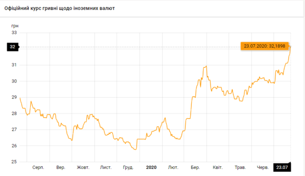 По состоянию на 23 июля падение гривны не прекращается, иностранные валюты продолжают укрепляться.