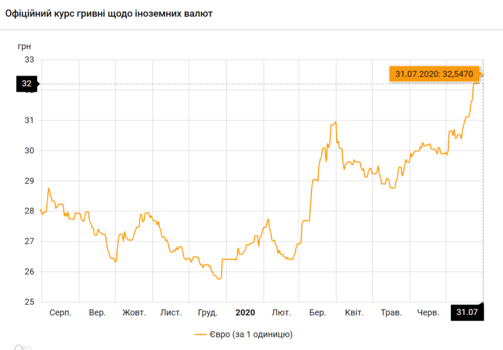 Официальный курс валют НБУ на 31 июля 2020 года:
