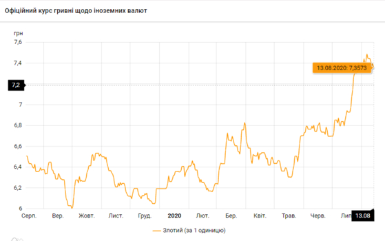 - 100 польских злотых - 737 грн (7,37 за злотый, +2 коп.)