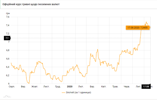 - 100 польских злотых - 734 грн (7,34 за злотый, -3 коп.)