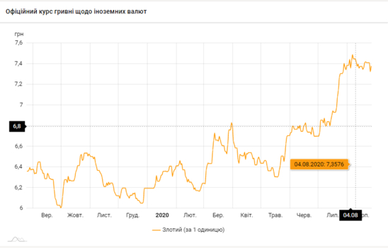 - 100 польских злотых - 737 грн (7,37 за злотый, +5 коп.)