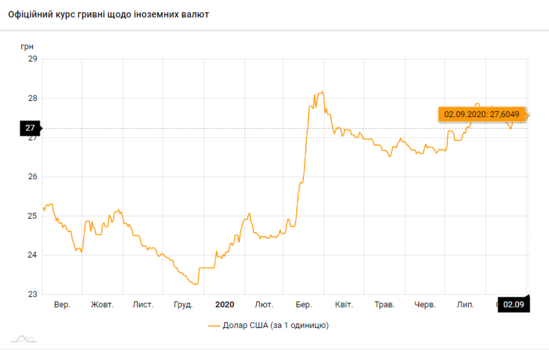 Национальный банк Украины обновил курсы валют на 2 сентября 2020 года.