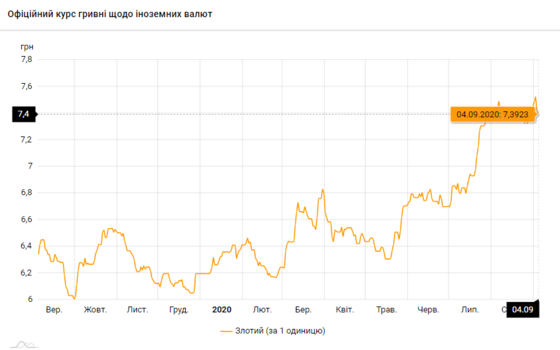 - 100 польских злотых - 739 грн (7,39 за злотый, -3 коп.)
