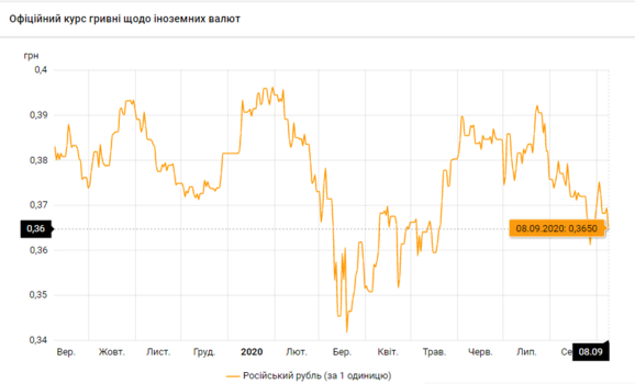 - 100 российских рублей - 365 грн (3,65 за 10 рублей, -4 коп.)