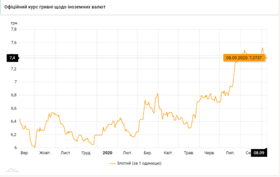 - 100 польских злотых - 737 грн (7,37 за злотый, -1 коп.)