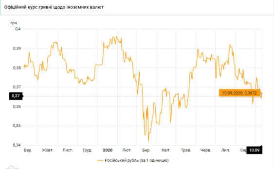 - 100 российских рублей - 367 грн (3,67 за 10 рублей, +2 коп.)