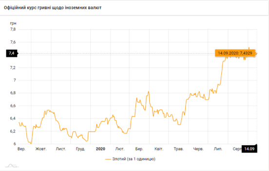 - 100 польских злотых - 743 грн (7,43 за злотый, +3 коп.)