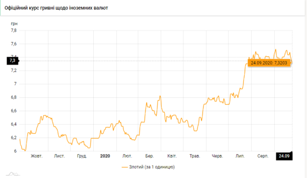 - 100 польских злотых - 732 грн (7,37 за злотый, -5 коп.)