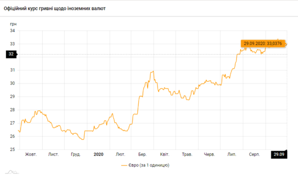 - 100 евро - 3303 грн (33,03 за евро, +16 коп.)