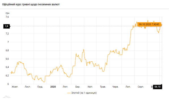 - 100 польских злотых - 742 грн (7,42 за злотый, +4 коп.)