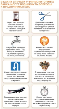 Причем, в группе риска оказались именно частные предприниматели и небольшие компании. С крупными клиентами банки ссорится не хотят, а вот небольшое предприятие запросто могут пустить по кругам финмониторингового ада.