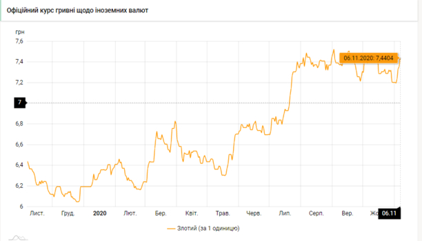 - 100 польских злотых - 744 грн (7,44 за злотый, +9 коп.)
