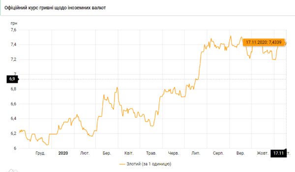- 100 польских злотых - 743 грн (7,43 за злотый, +4 коп.)