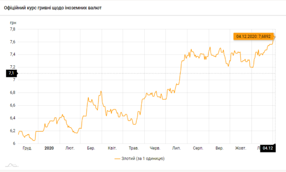 - 100 польских злотых - 768 грн (7,68 за злотый, +2 коп.)