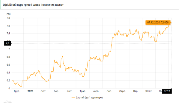 - 100 польских злотых - 768 грн (7,68 за злотый, 0 коп.)