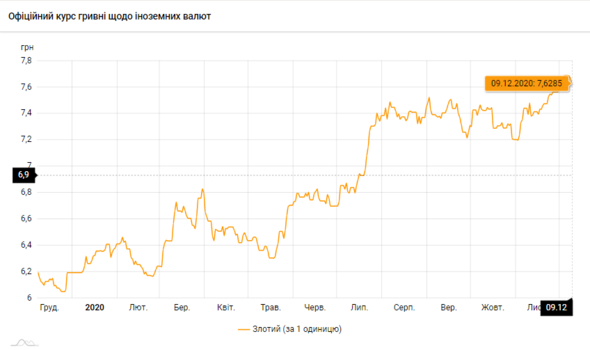 - 100 польских злотых - 762 грн (7,62 за злотый, -5 коп.)