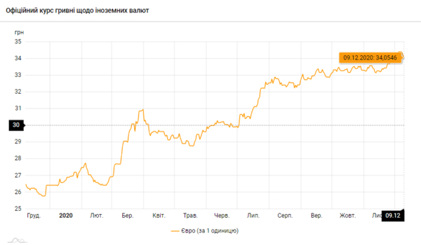Национальный банк Украины обновил курсы валют на 9 декабря 2020 года.