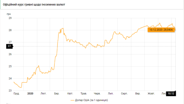 Национальный банк Украины обновил курсы валют на 10 декабря 2020 года.