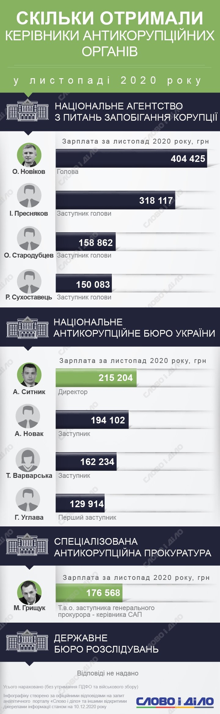 Стали известны цифры зарплат, которые в ноябре 2020 года получили руководители украинских антикоррупционных органов. В целом, на их заработную плату за месяц ушло почти 2 млн грн.