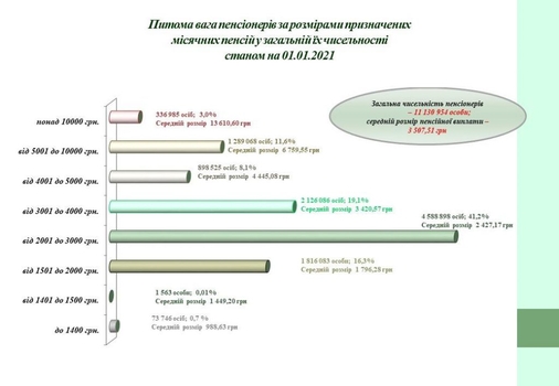 В Украине по состоянию на 1 января 2021 года имеется 11 130 954 пенсионеров, средний размер получаемой ими пенсионной выплаты от государства составляет 3 507,51 гривен.