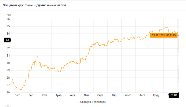 Национальный банк Украины обновил курсы валют на 3 февраля 2021 года.