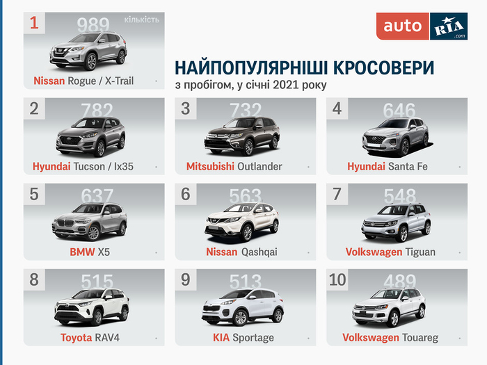 За январь 2021 года в Украине приобретение кроссоверов составило 20% от всех сделок на вторичном авторынке и более 50% - на рынке новых автомобилей.