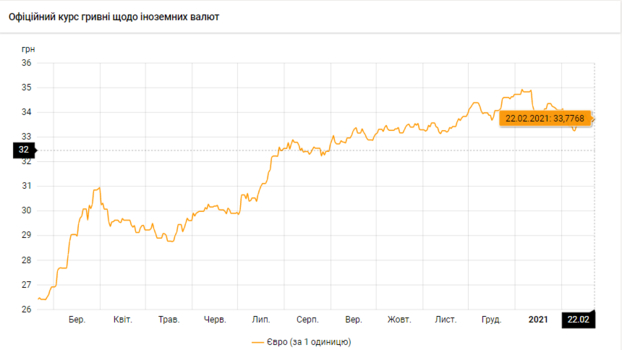 Национальный банк Украины обновил курсы валют на 22 февраля 2021 года.